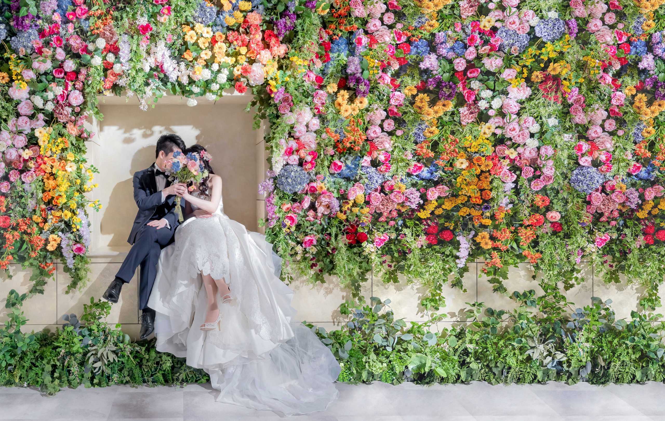 花々の隙間から微笑むおふたりの姿✧°