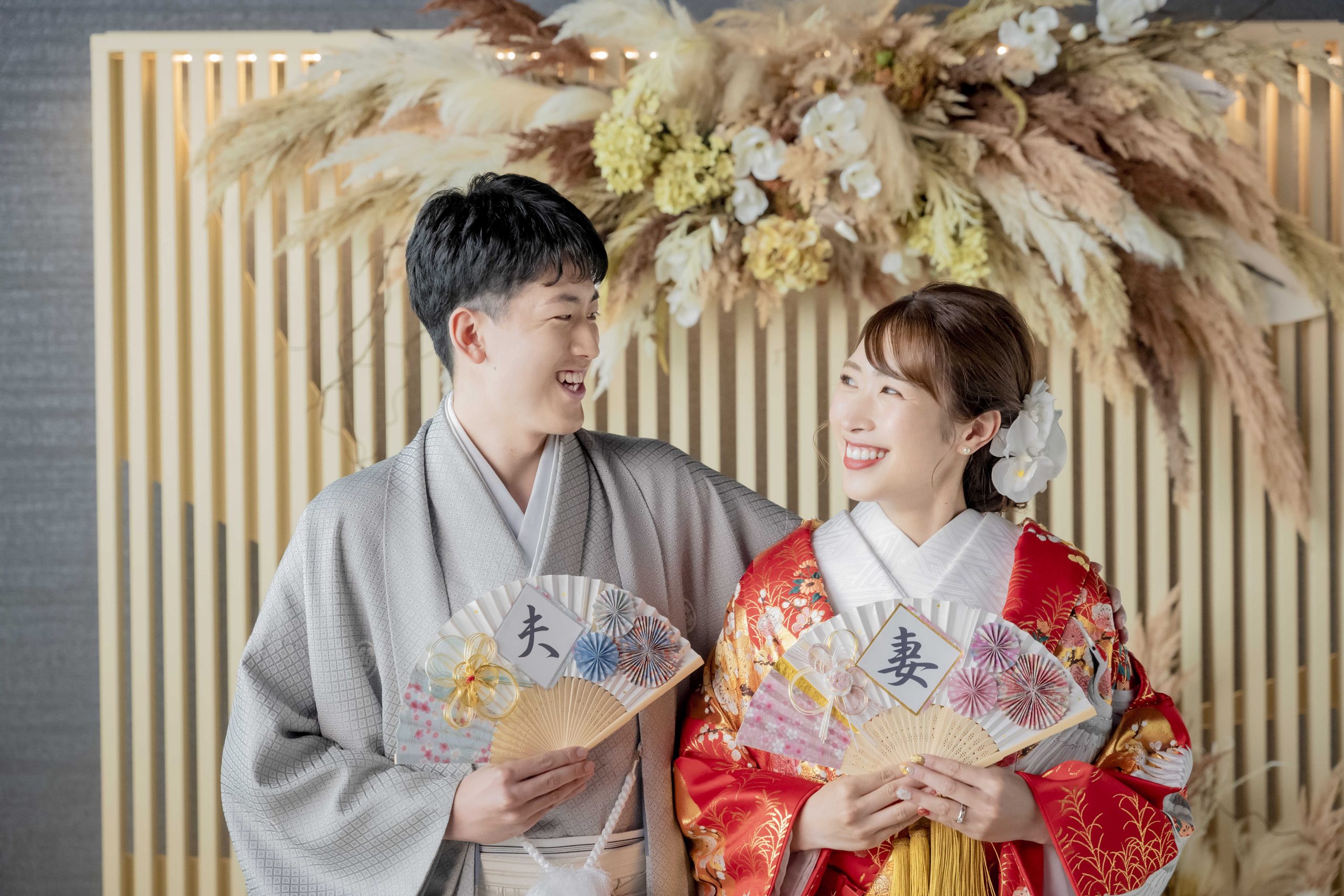 見つめ合うおふたりの眼差しから仲の良さを感じますね♪