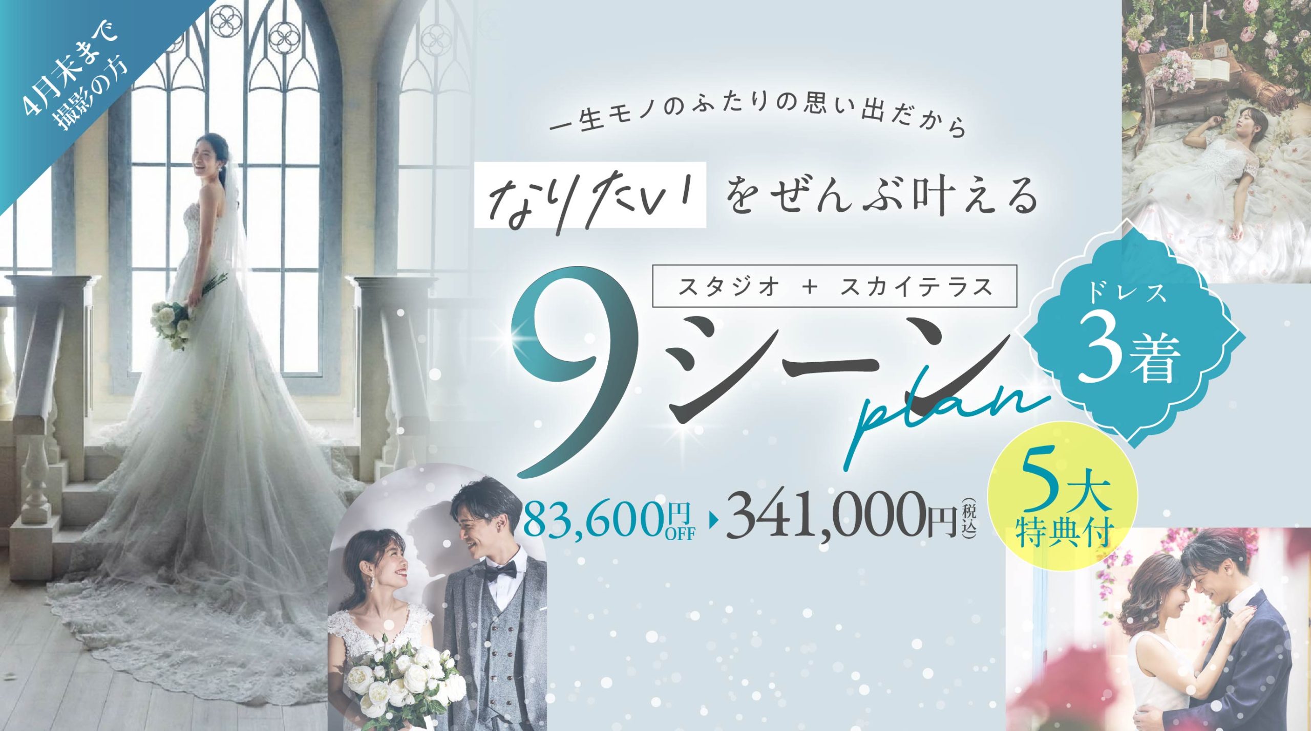 【春満喫!スタジオ+スカイテラス| 9シーンプラン(ドレス3着)!|4月末撮影まで】5大特典プレゼント付き!