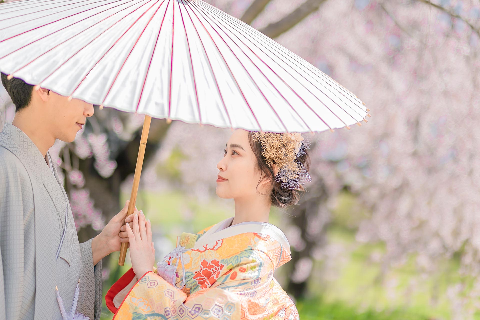 大仙公園や大阪城公園などのロケーションとスタジオに5m満開のサクラが登場!貸し切り撮影で今だけ限定のお得なプランです。