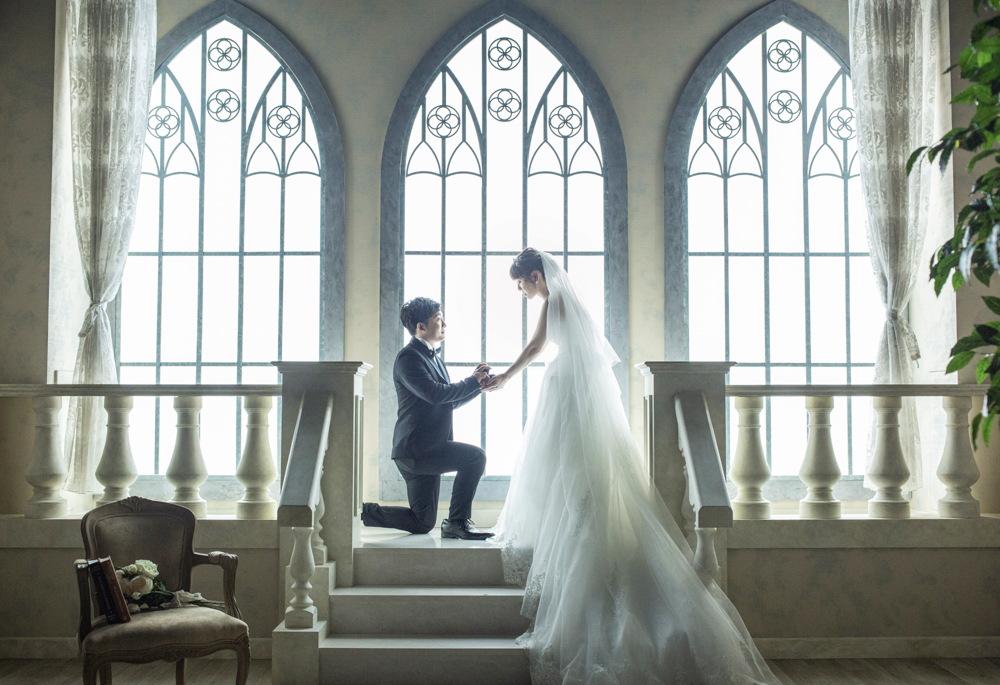 チャペルの前で再現された、誰もが憧れるプロポーズの瞬間。