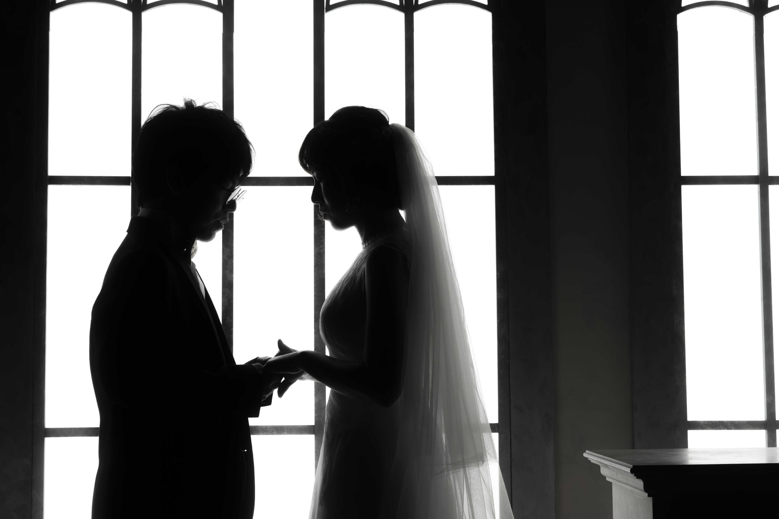 差し込む光に照らされながら手を取り合う姿が、これからの未来を象徴するかのように美しく映えます♪