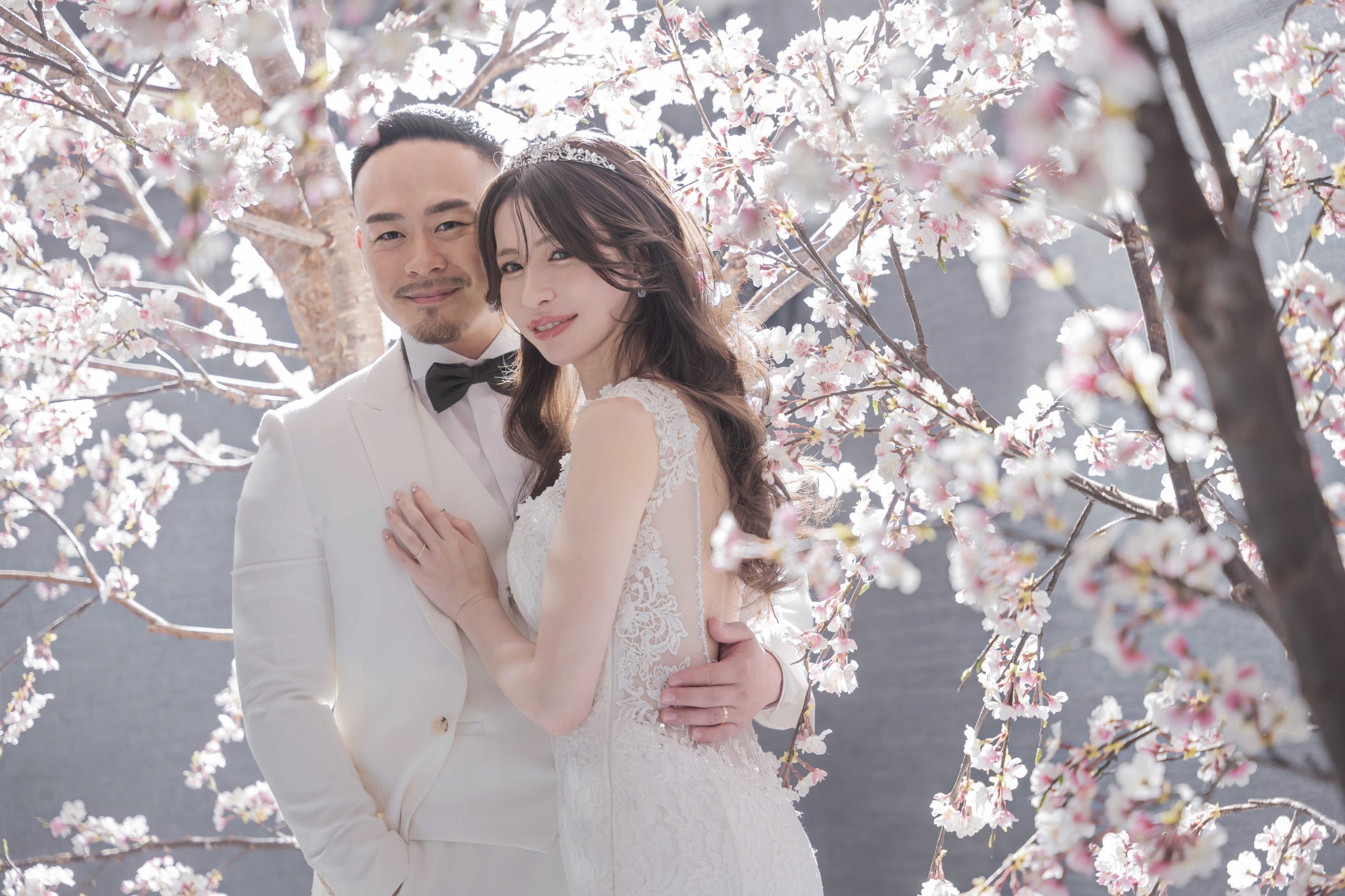 新婦様がそっと寄り添い、春らしい柔らかさに包まれた一枚。