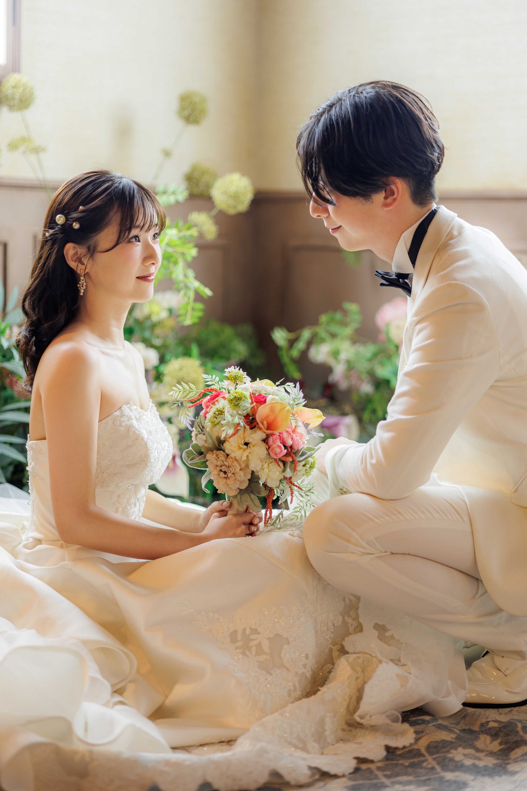 シーン「チャペル」の荘厳な雰囲気の中、おふたりで一つのブーケを持ちながら、深い想いを誓う姿が…♪