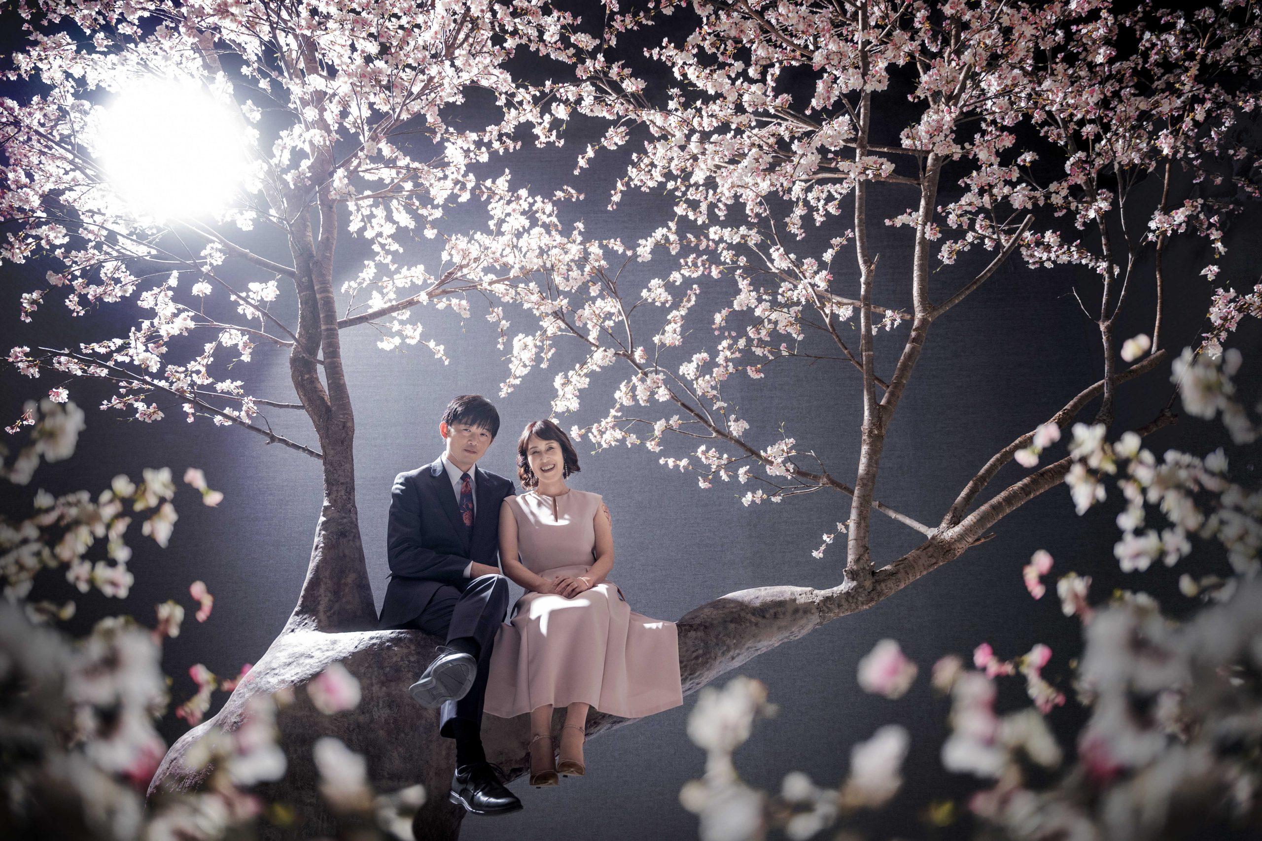満開の桜に囲まれたおふたり✿まるで春が祝福しているかのような幻想的なシーン。