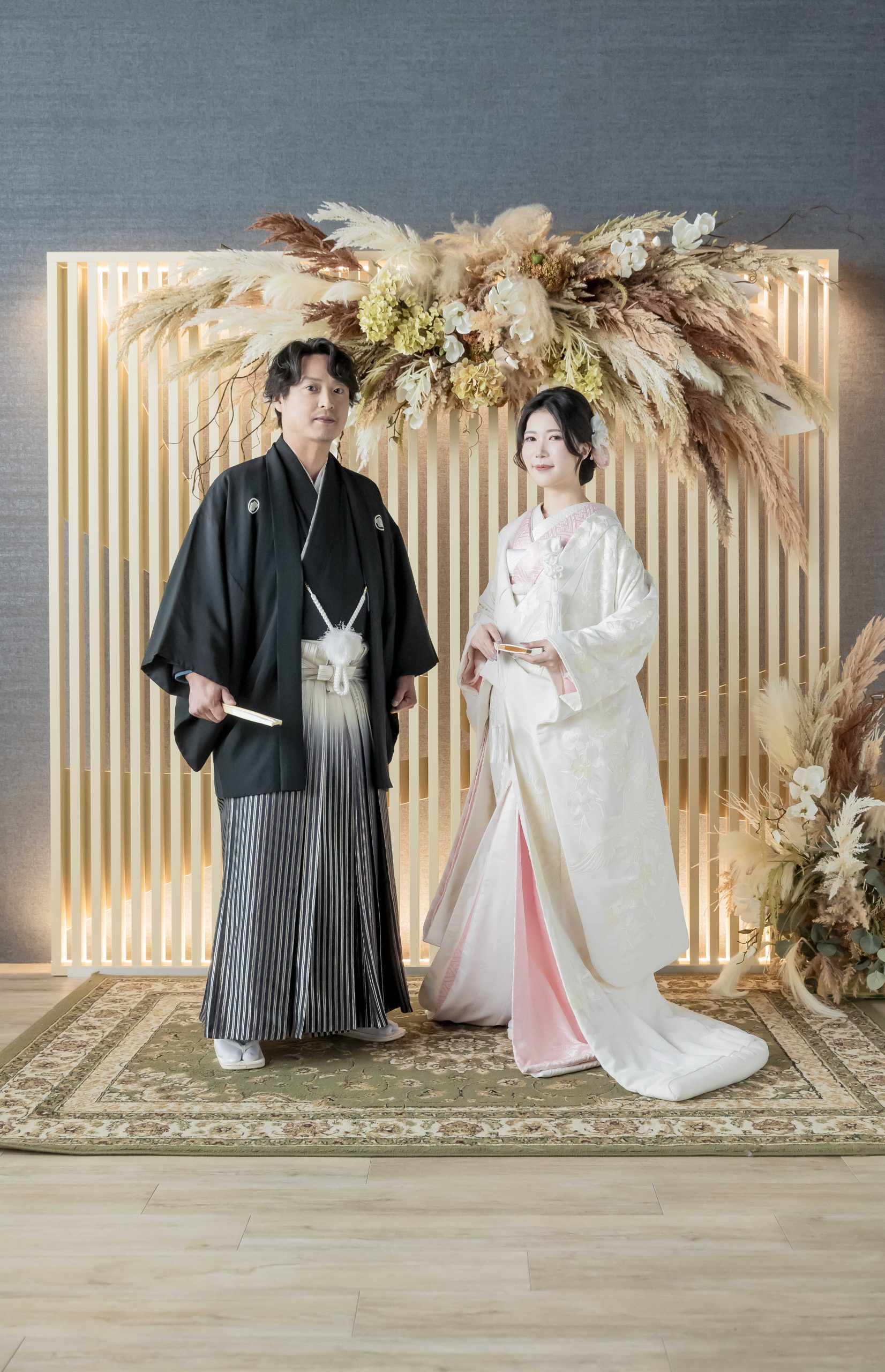 和装に身を包み、静かに並び立つおふたり♪