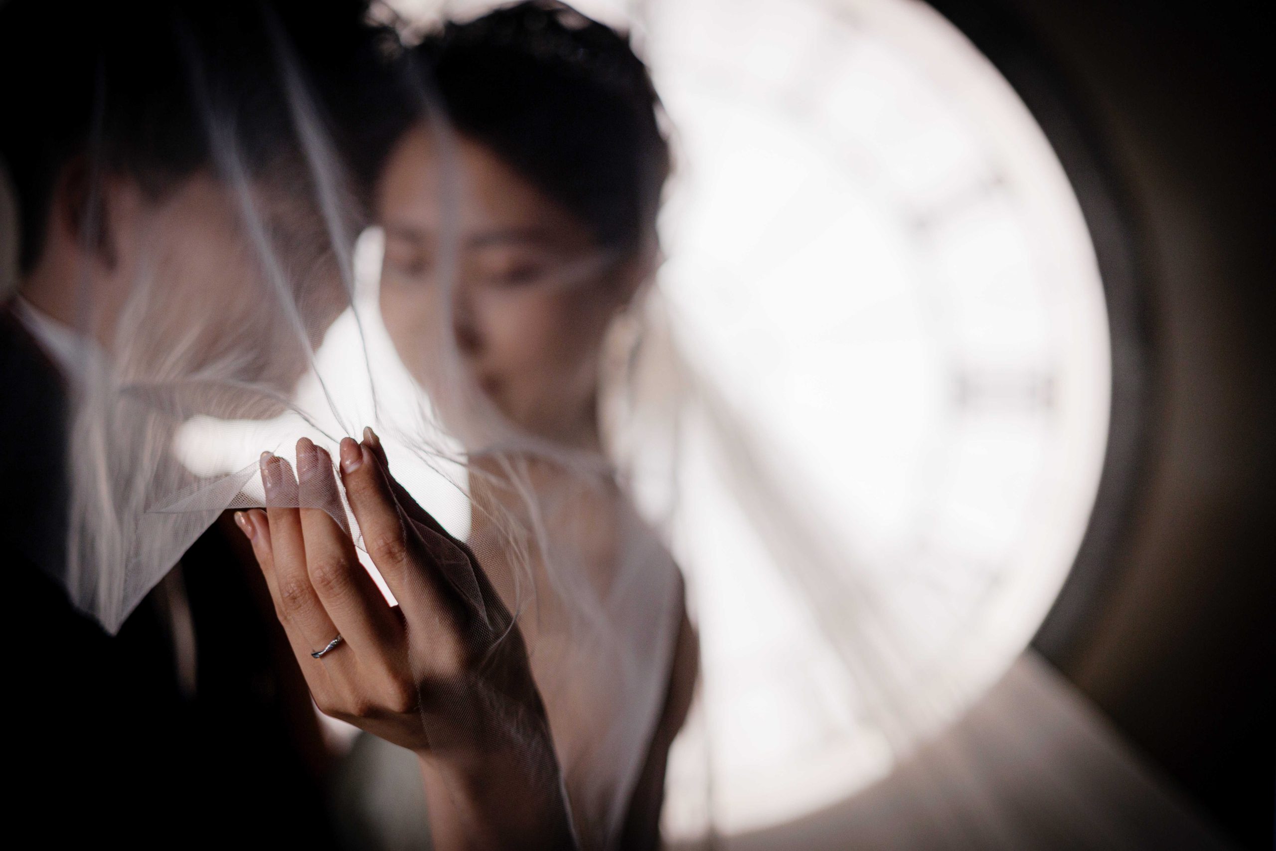 指輪にフォーカスを当てた一枚。奥に映る優しい微笑みと寄り添った姿が愛らしいですね。