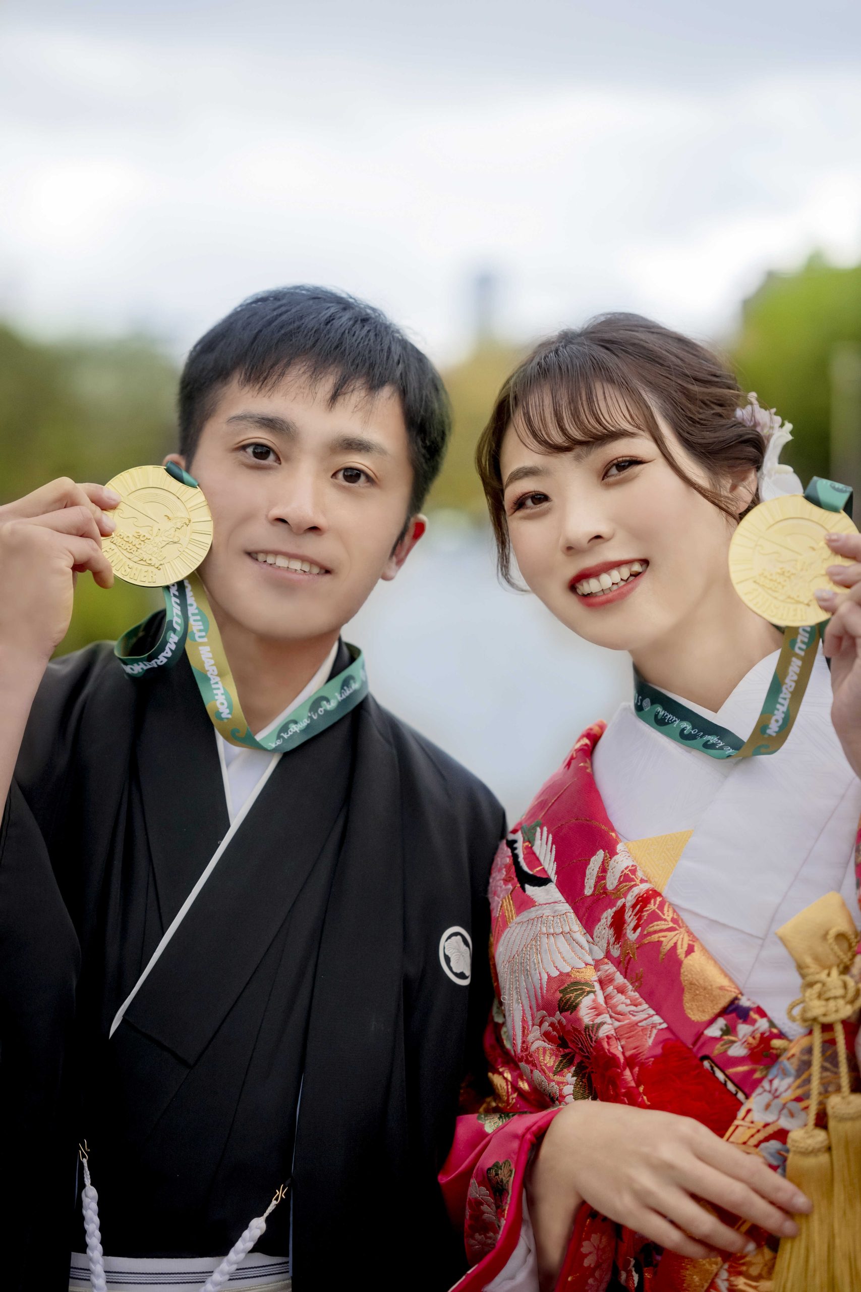 「がんばったね」「ありがとう」そんなお気持ちがこもった持ち込みメダルをおふたりで手にして♪